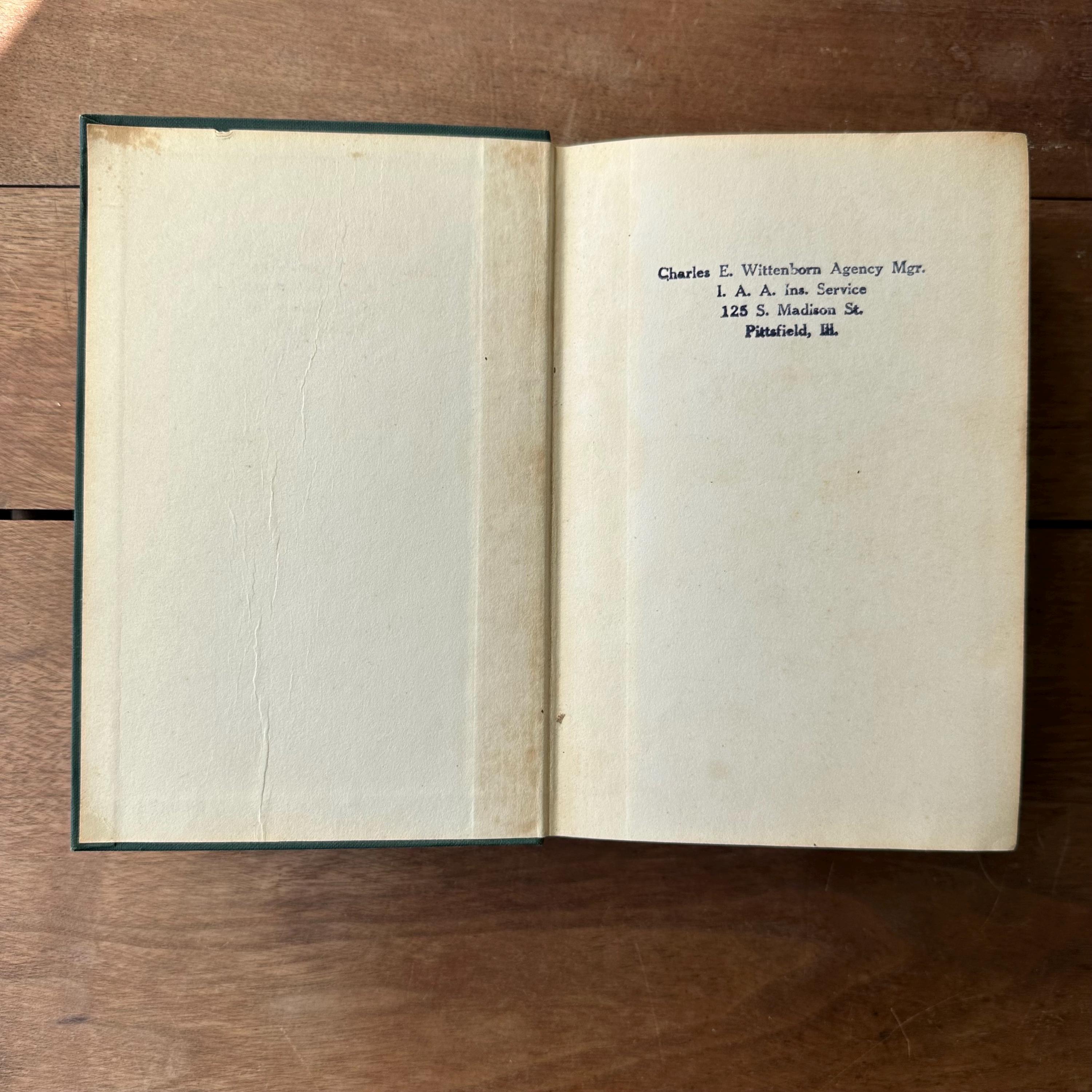 The book is in great vintage condition for its age and use. The covers have minimal to no wear and the gold lettering is intact and bright. Charles E. Wittenborn Agency Mgr. stamped their information in black ink inside the front cover. The covers are still attached at the spine. All the illustration plates are included. The pages are yellowed.