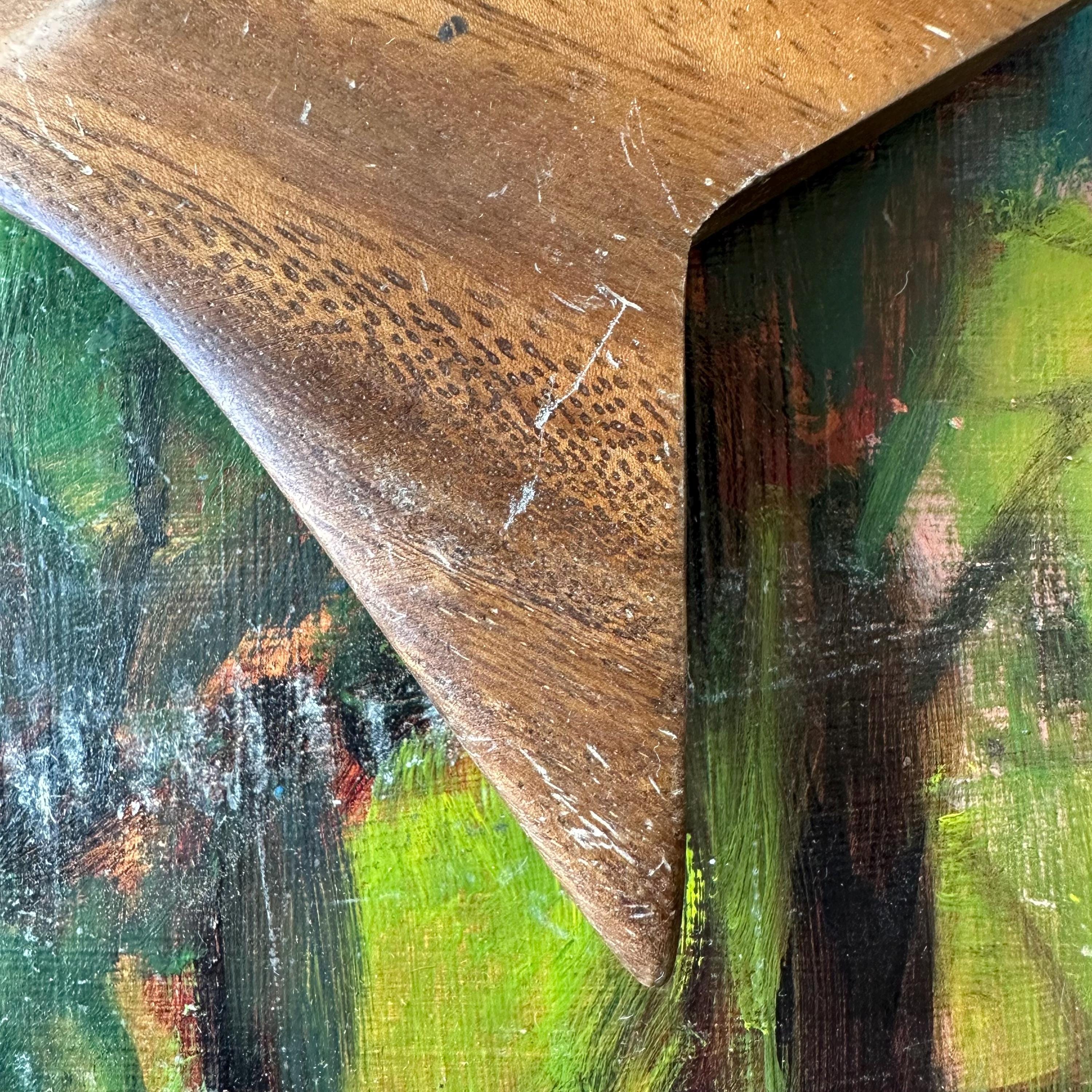 The fish dish is in good vintage condition for its age and use. The fish face and wood of the tail have some scratching. The wood finish is in good condition with general fading and discoloration.