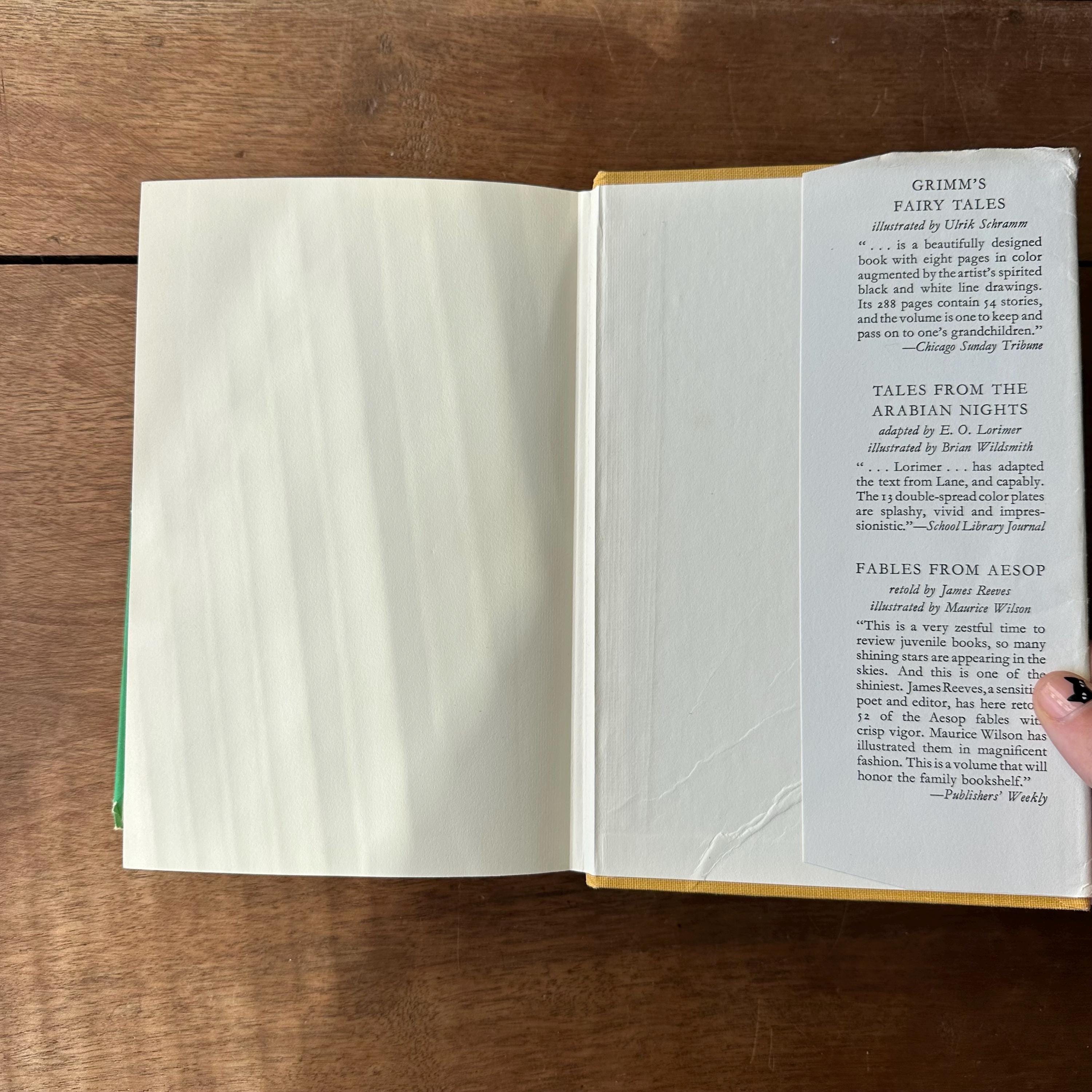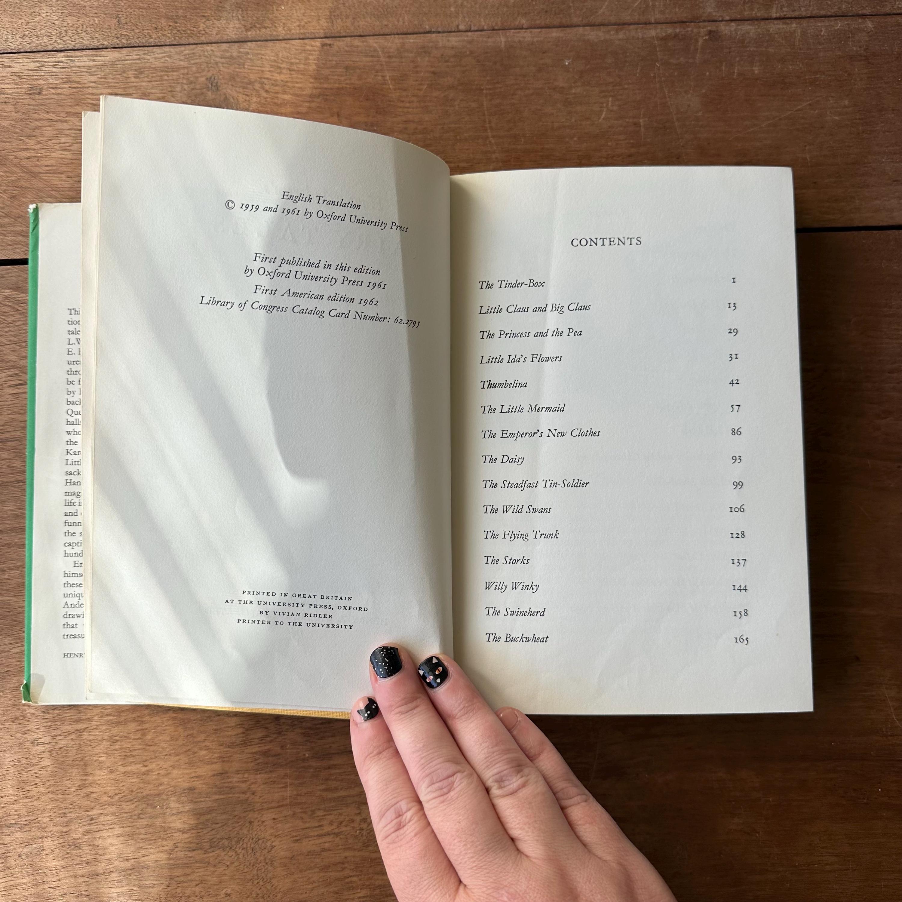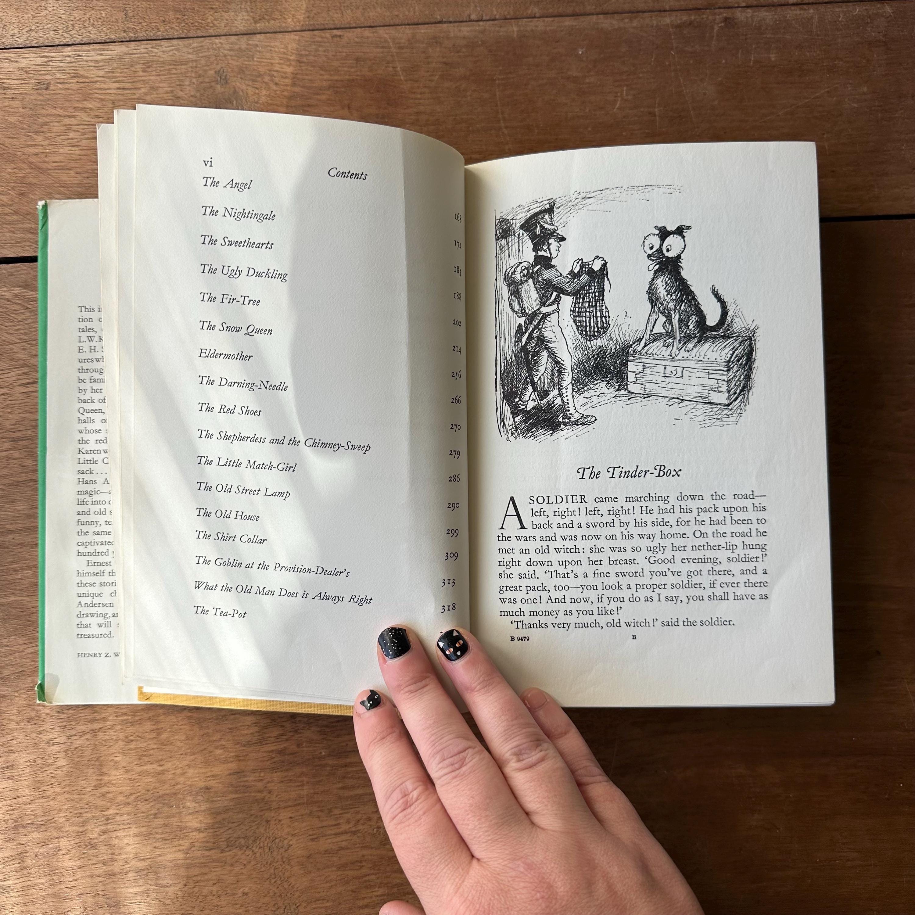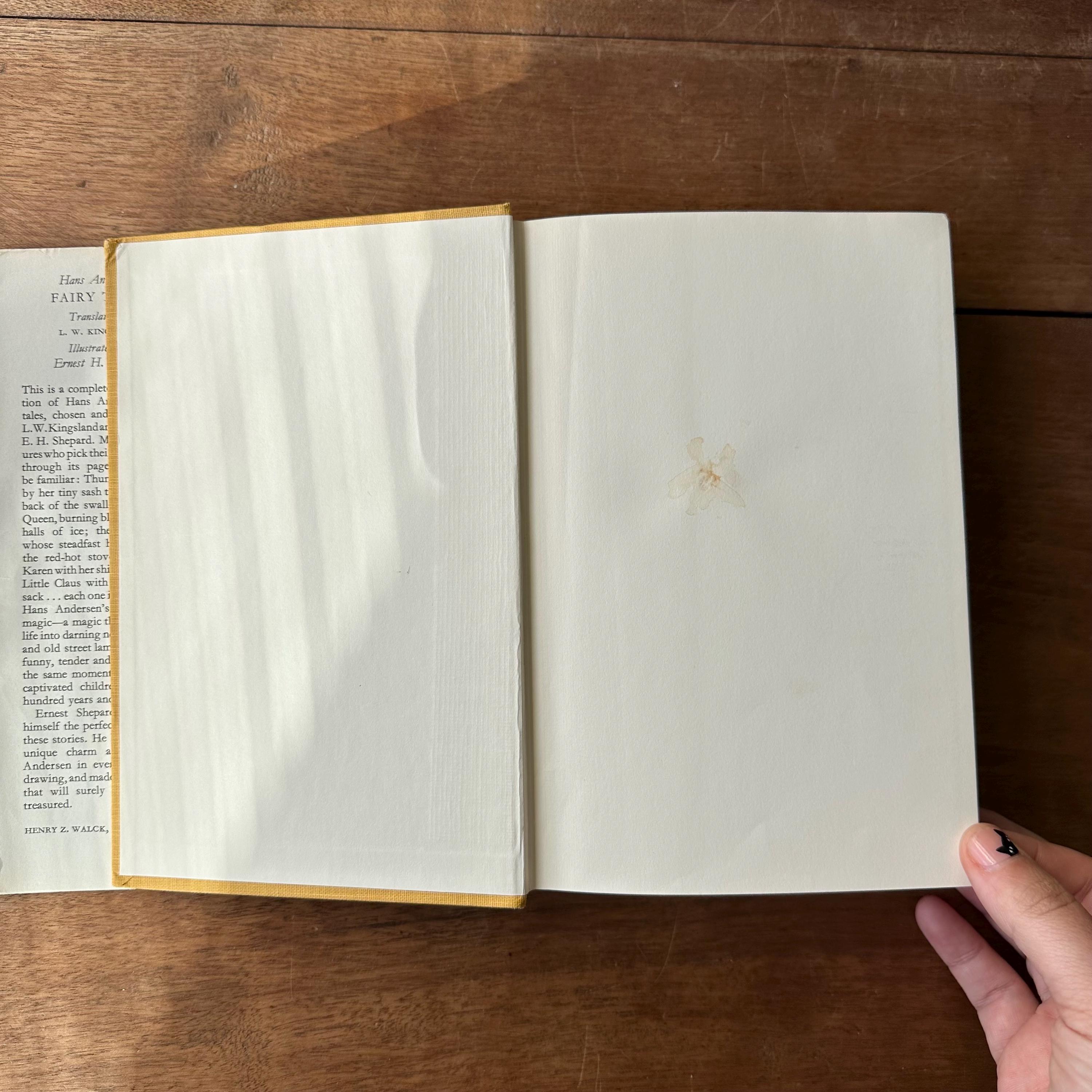 This is the 1962 first American edition of Hans Andersen's Fairy Tales, translated by L W Kingsland, illustrated by Ernest Shepard, and published by Henry Z. Walck, Incorporated. It has its original green illustrated dust jacket. Underneath, the book is mustard gold with black lettering on the spine. The book is fully illustrated with both black and white illustrations and full color illustration plates. Fairy tales include Hans Christian Andersen's most famous tales like The Little Mermaid.