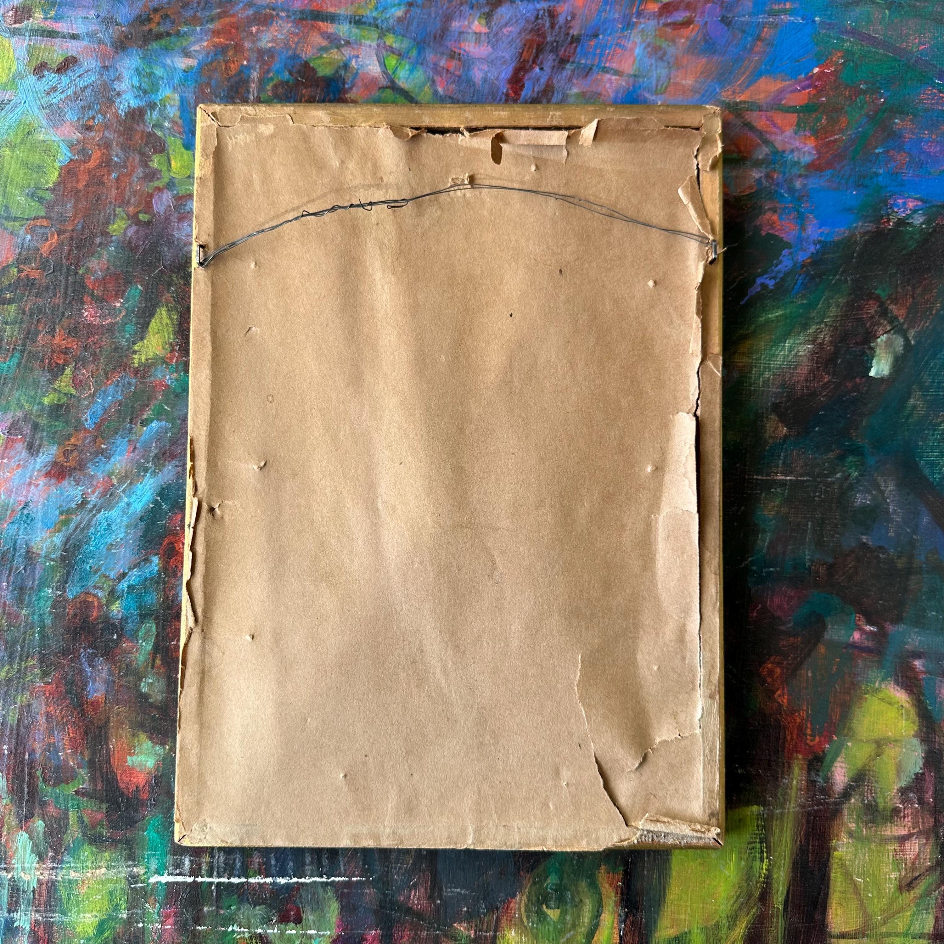 The print and frame are in great vintage condition for their age and use. The glass is mostly clear with a small smudge in the lower left corner. The print has some foxing to the lower right. The frame is nailed tightly. There is paper on the back to cover the back of the frame but it does have rips and tears along the top.