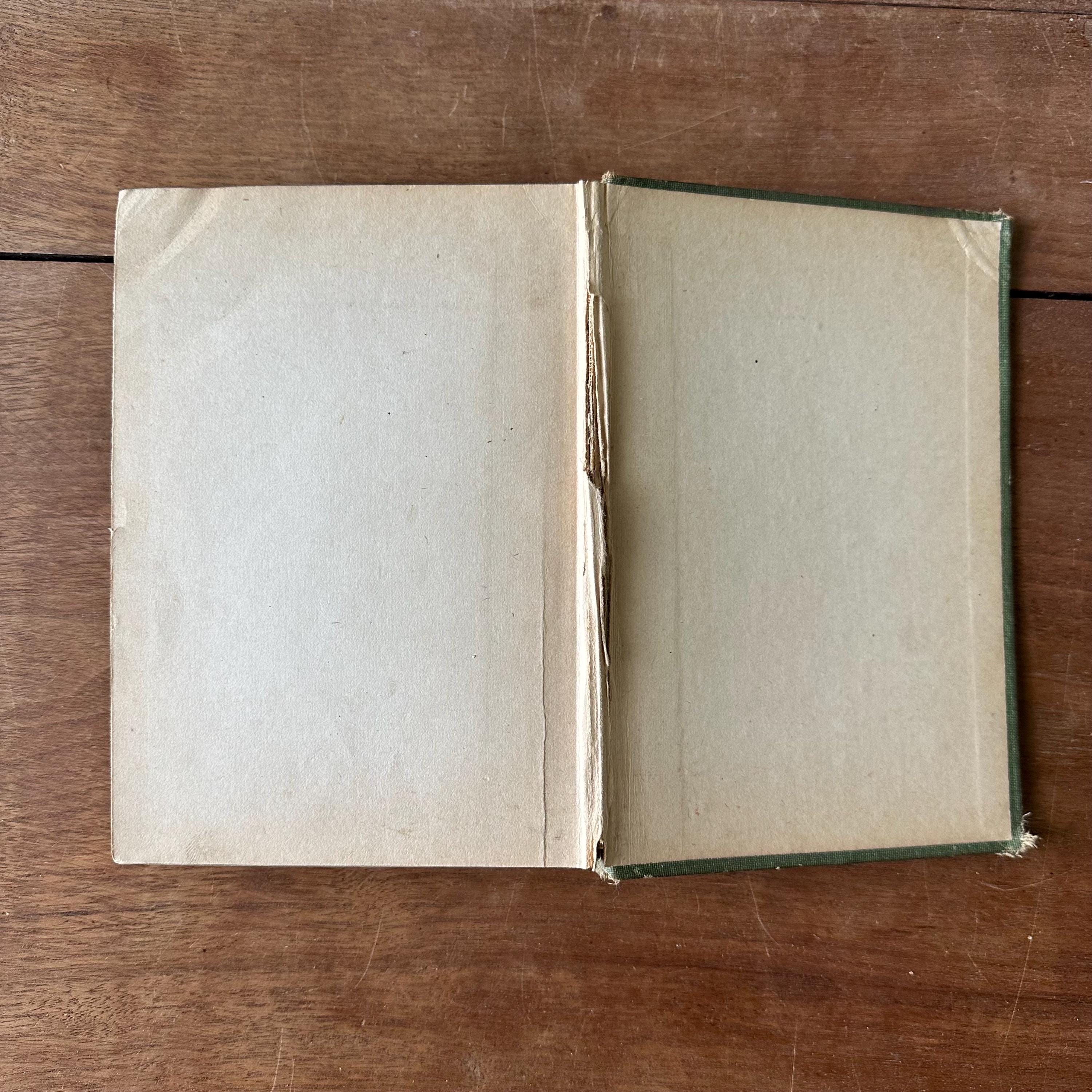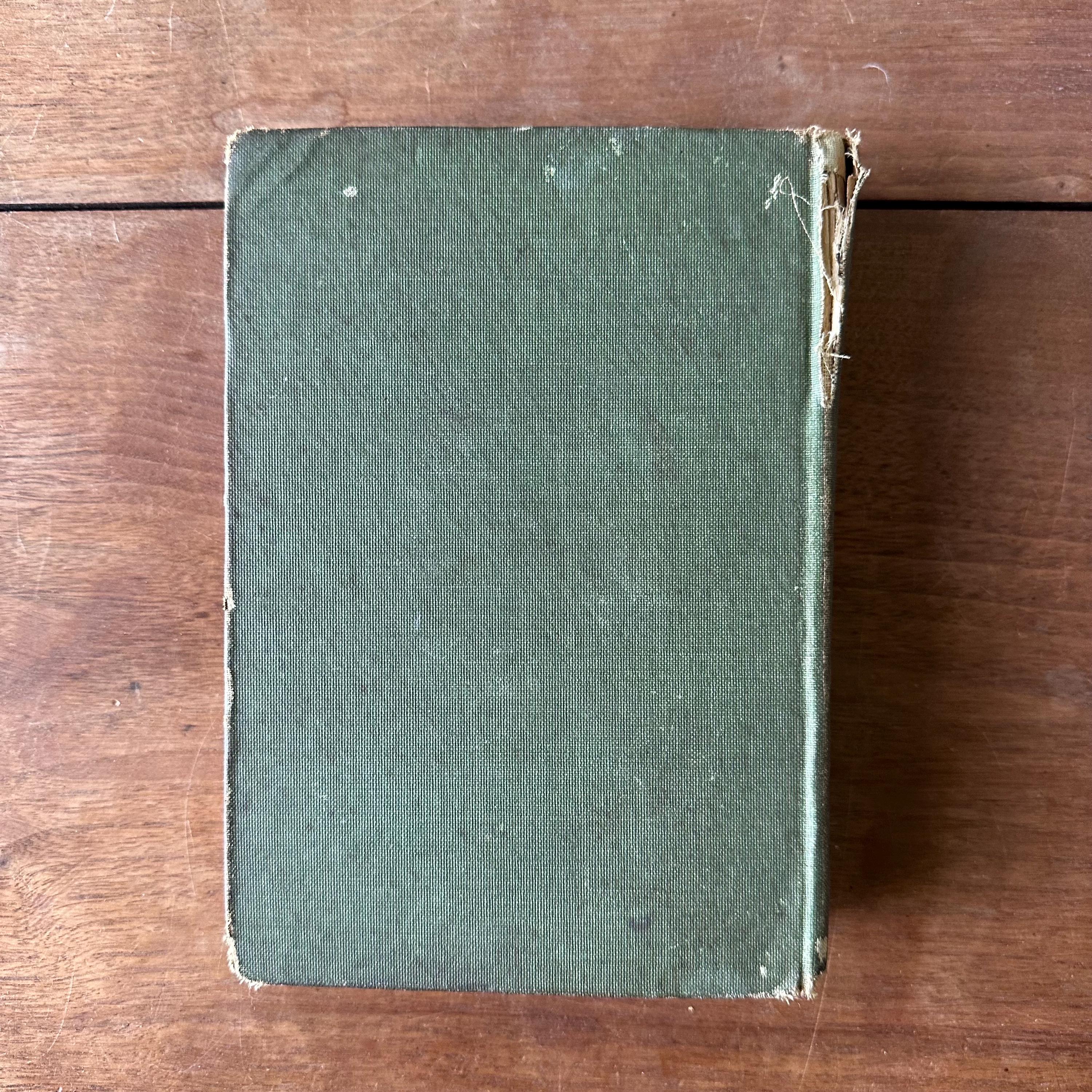The book is in good antique condition for its age and use. It has general wear to the covers, mostly to corners and spine edges with fraying, fading, and discoloration. The gold lettering on cover and spine is intact and bright. The back cover has begun to separate from the spine inside the back cover. The spine is a little wobbly in its bindings. The pages are yellowed.