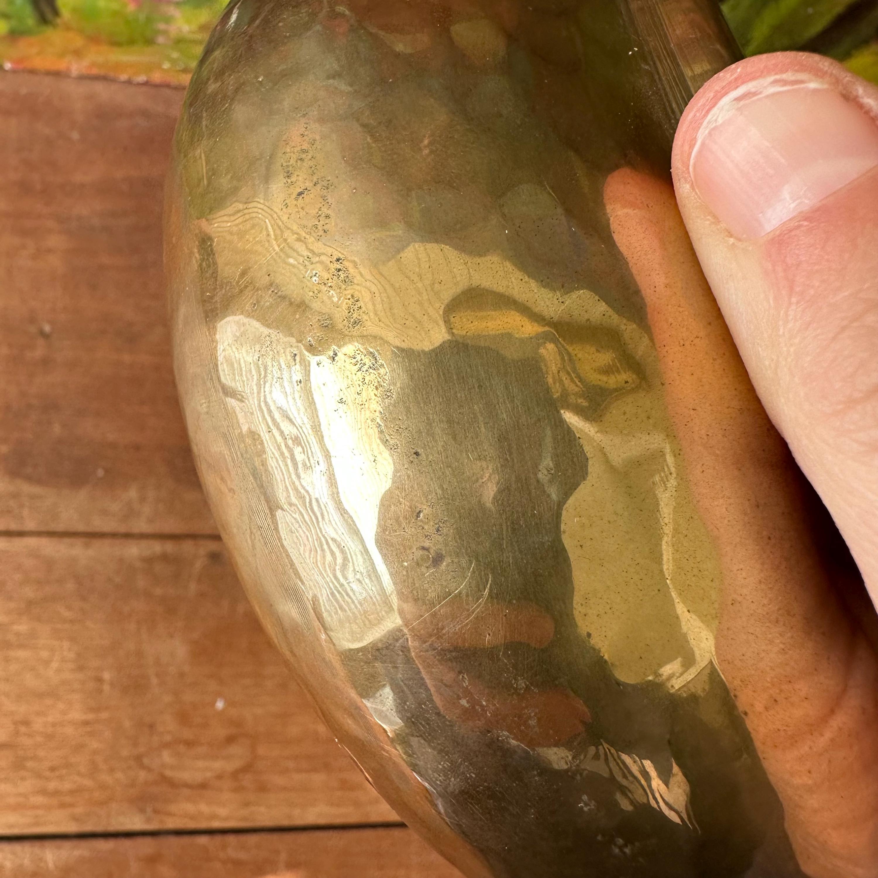 The vase is in good vintage condition for its age and use. The brass is starting to dull but is still fairly shiny The vase does have small tarnish dots and some minor scratching.