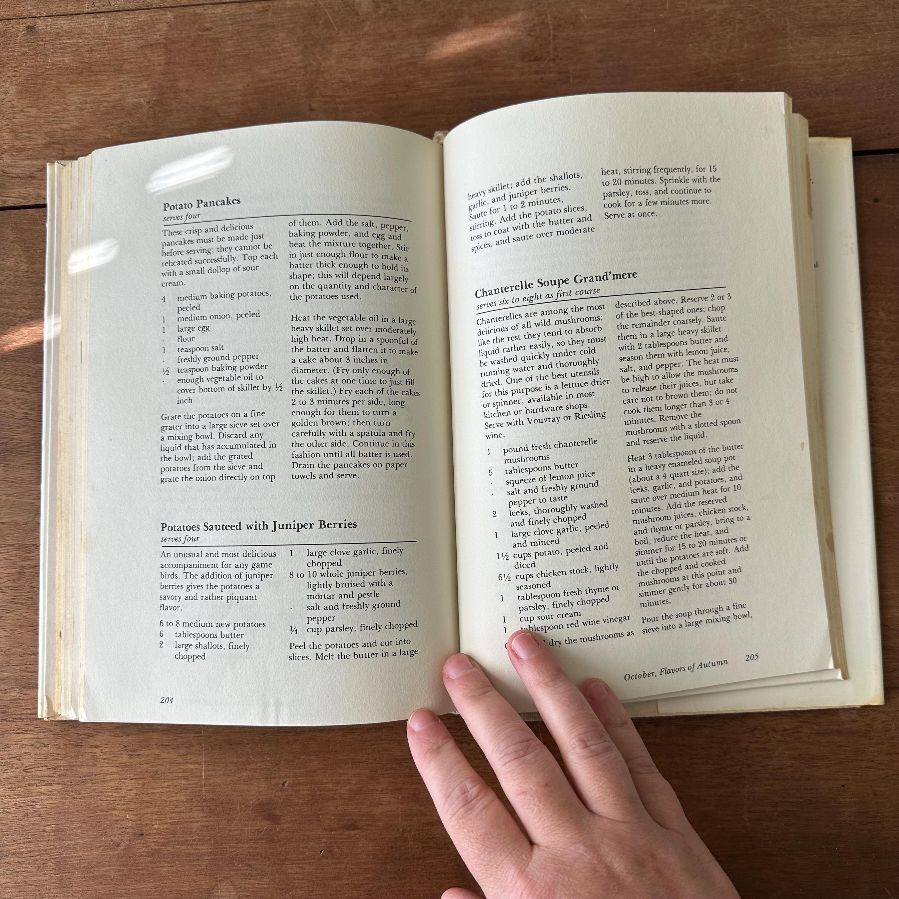 The book is in great vintage condition for its age and use. The dust jacket has general wear, mostly to corners and edges. The covers underneath are like new. There is an inscription in ink inside the front cover, "For Joan Happy Cooking From Tripp, Tyler, + Sue". There is also a letter from Sue to Joan from 1981 tucked in between the pages. The pages have yellowed.