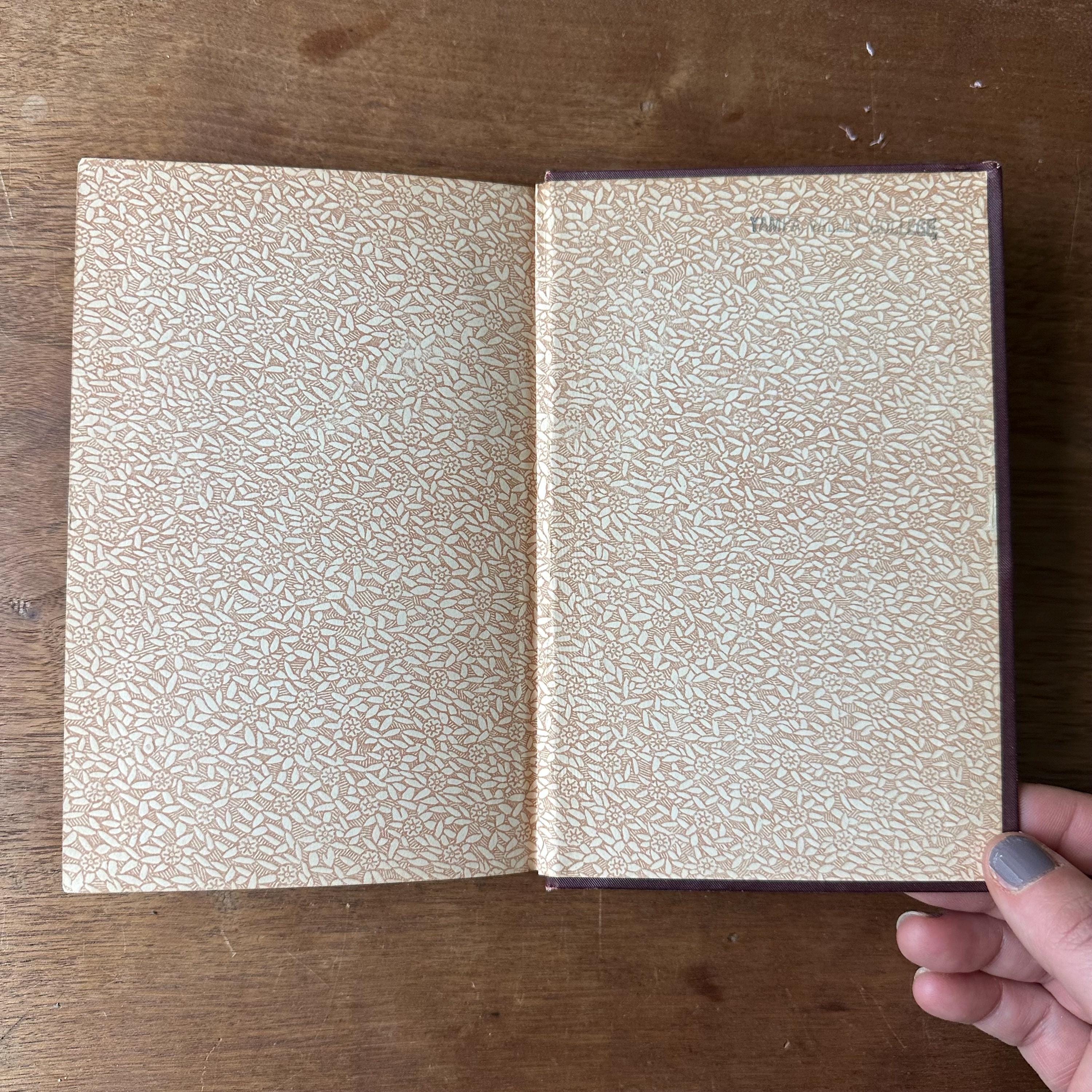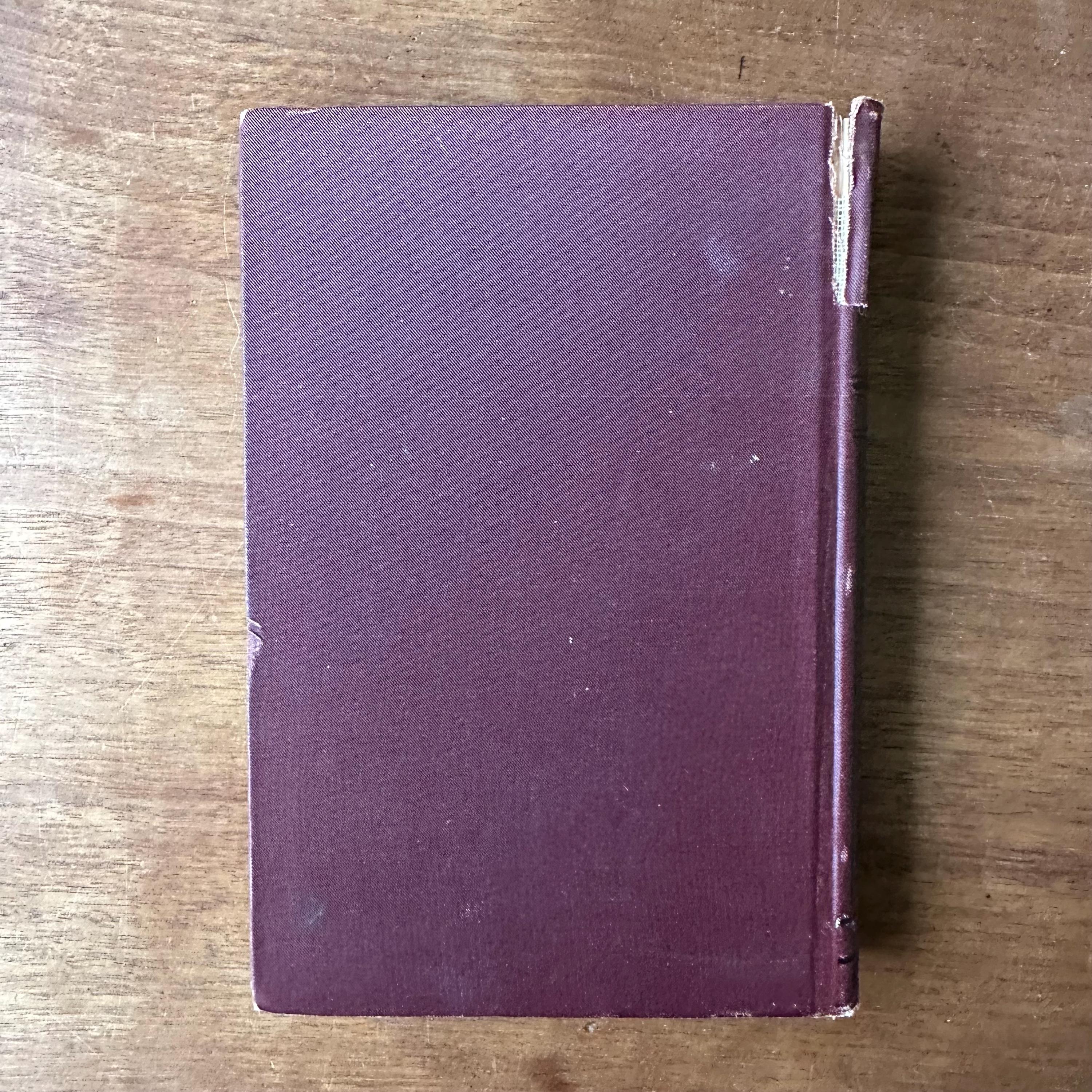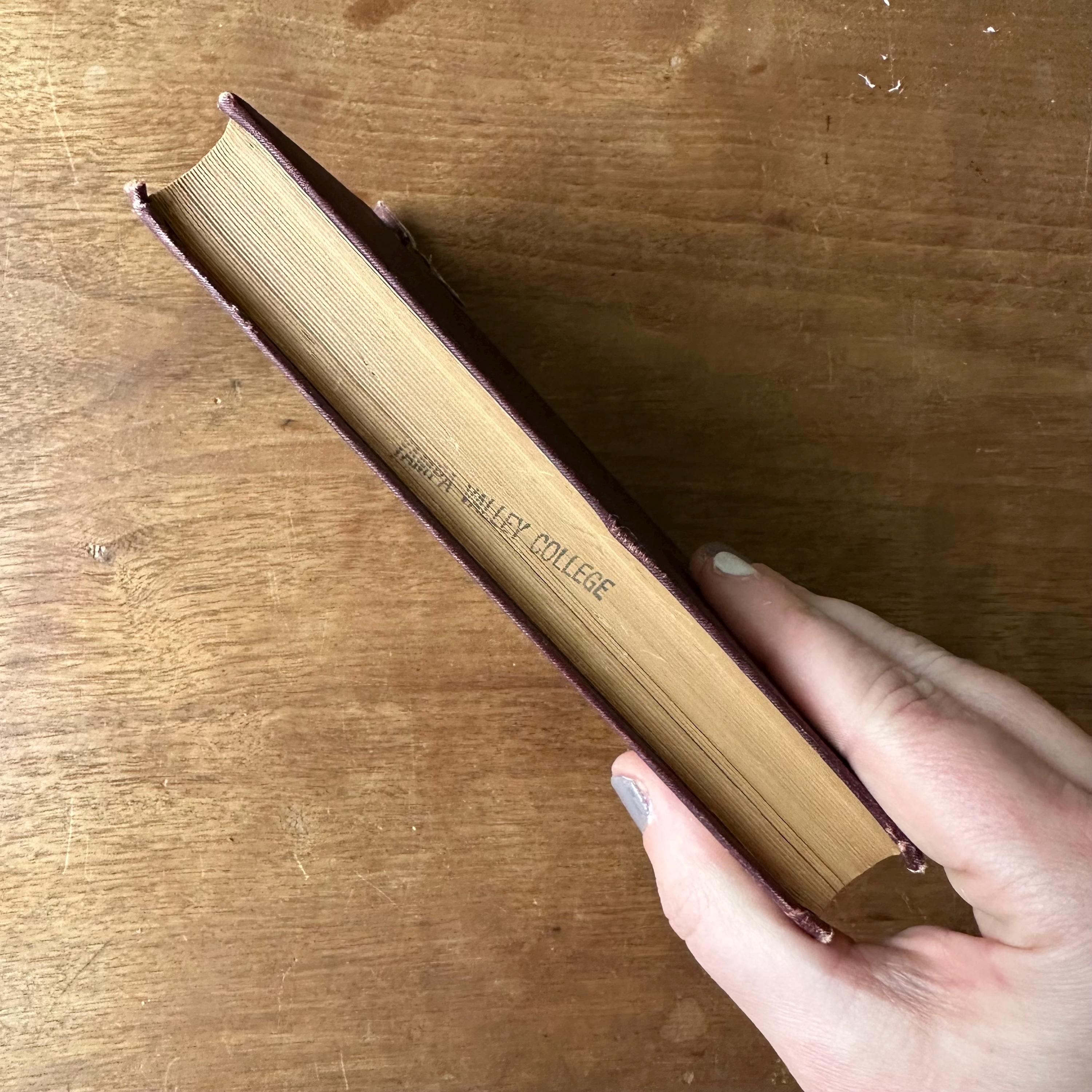 The book is in good antique condition for its age and use as an ex-library book. The call number on the spine is written in white ink and is mostly faded. There are Yampa Valley College stamps inside the front and back covers, as well as on the end pages. The covers have general wear with one vertical tear along the top back eighth of the spine. The covers are still attached at the spine. There is a torn book plate and the very top portion of a library due date card inside the front cover. There are library pencil markings on the title page and the previous owner made a couple of pencil notations throughout the book, including his dated review on the last page. They said it was a delightful story.