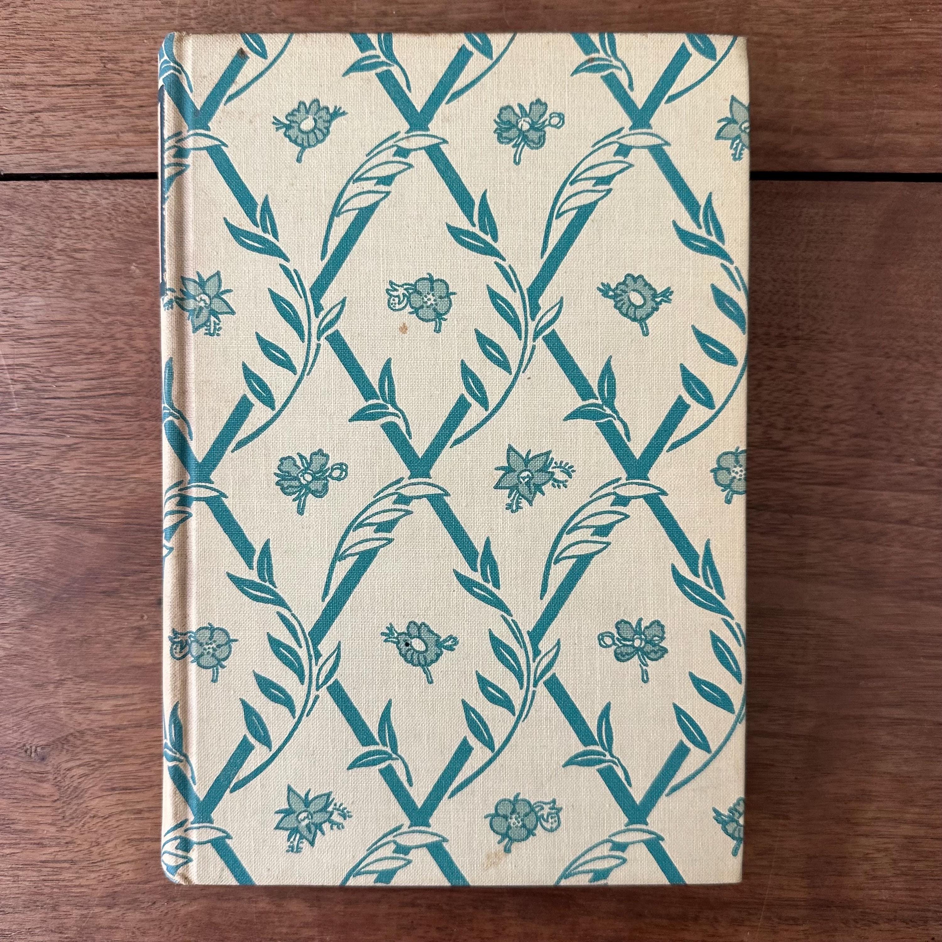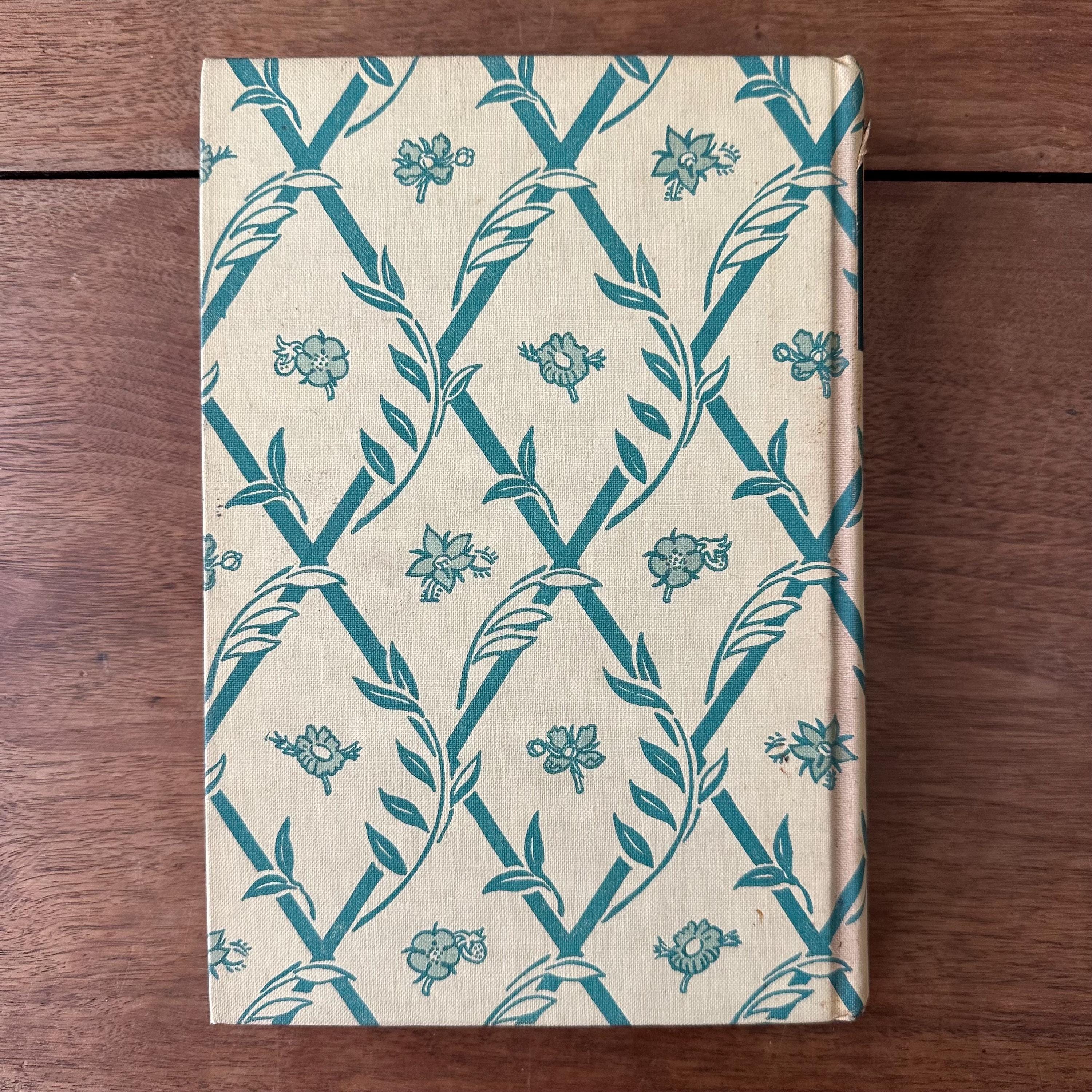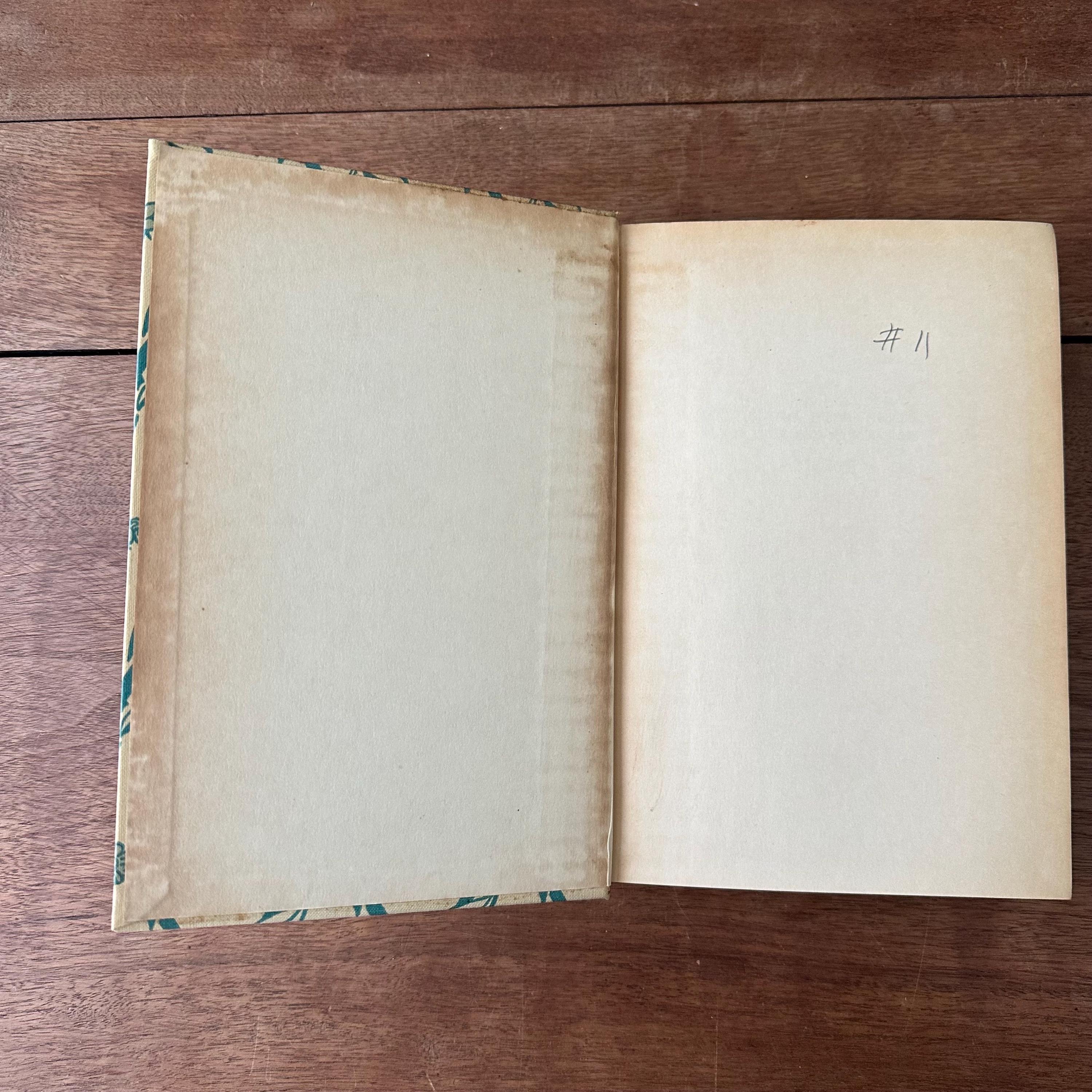 The book is in good vintage condition for its age and use. The cream part of the cover has darkened and stained, especially on the spine. The label is yellowed with the top left corner missing. Someone wrote #11 in pencil inside the front cover. The pages are yellowed with some foxing. The covers are attached at the spine.