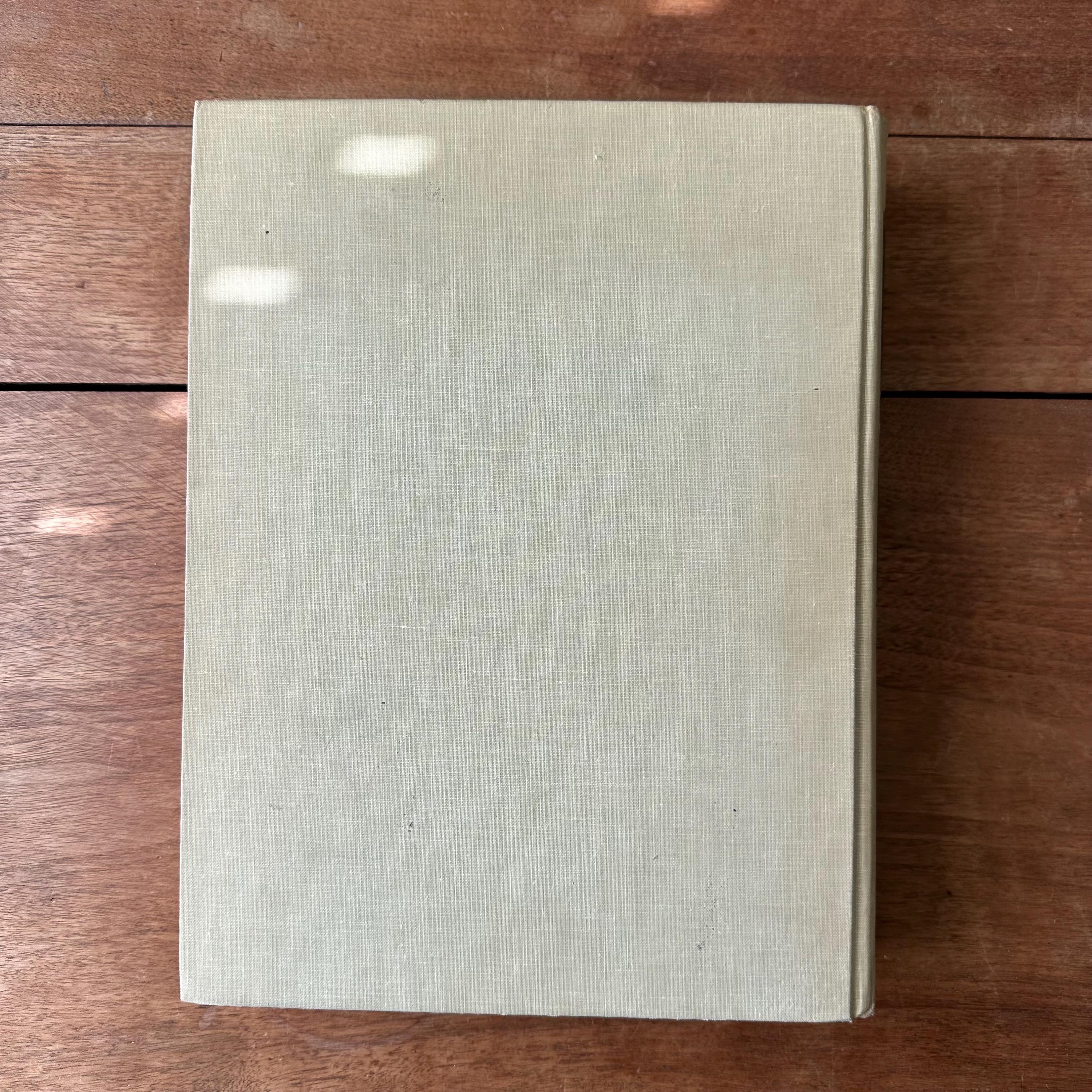 The book is in good vintage condition for its age and use. The covers have general wear with some fading to the spine label and a small, slight stain on the front cover. The spines are still attached at the covers. There is a faint ink inscription inside the front cover. The pages are beginning to yellow at the edges.