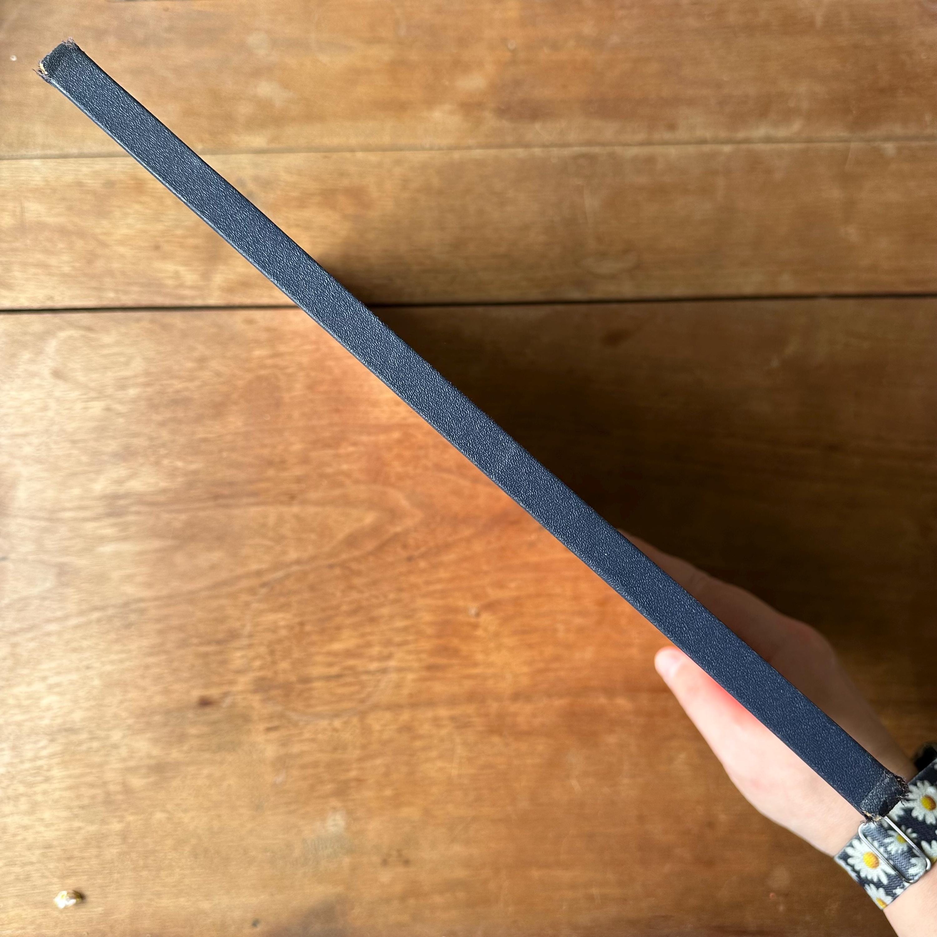 This is an oversized book, measuring 12.75 by 9.75 inches. It is half an inch thick.