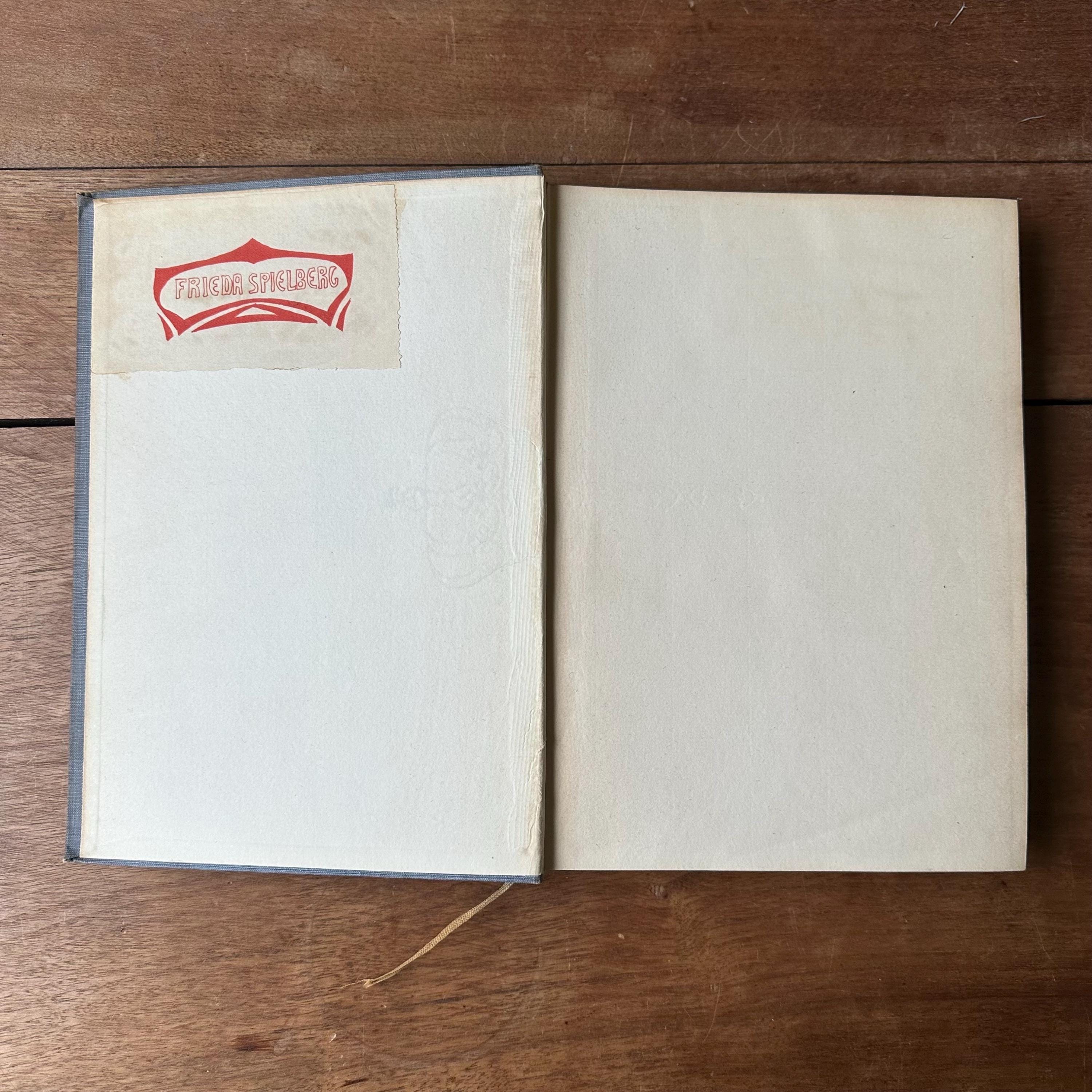 The books are in great antique condition for their age and use. The covers have minimal wear. The bookmarks are fraying and have discoloration. Both books have bookplates inside the front covers from Frida Spilberg. The pages have begun to yellow.