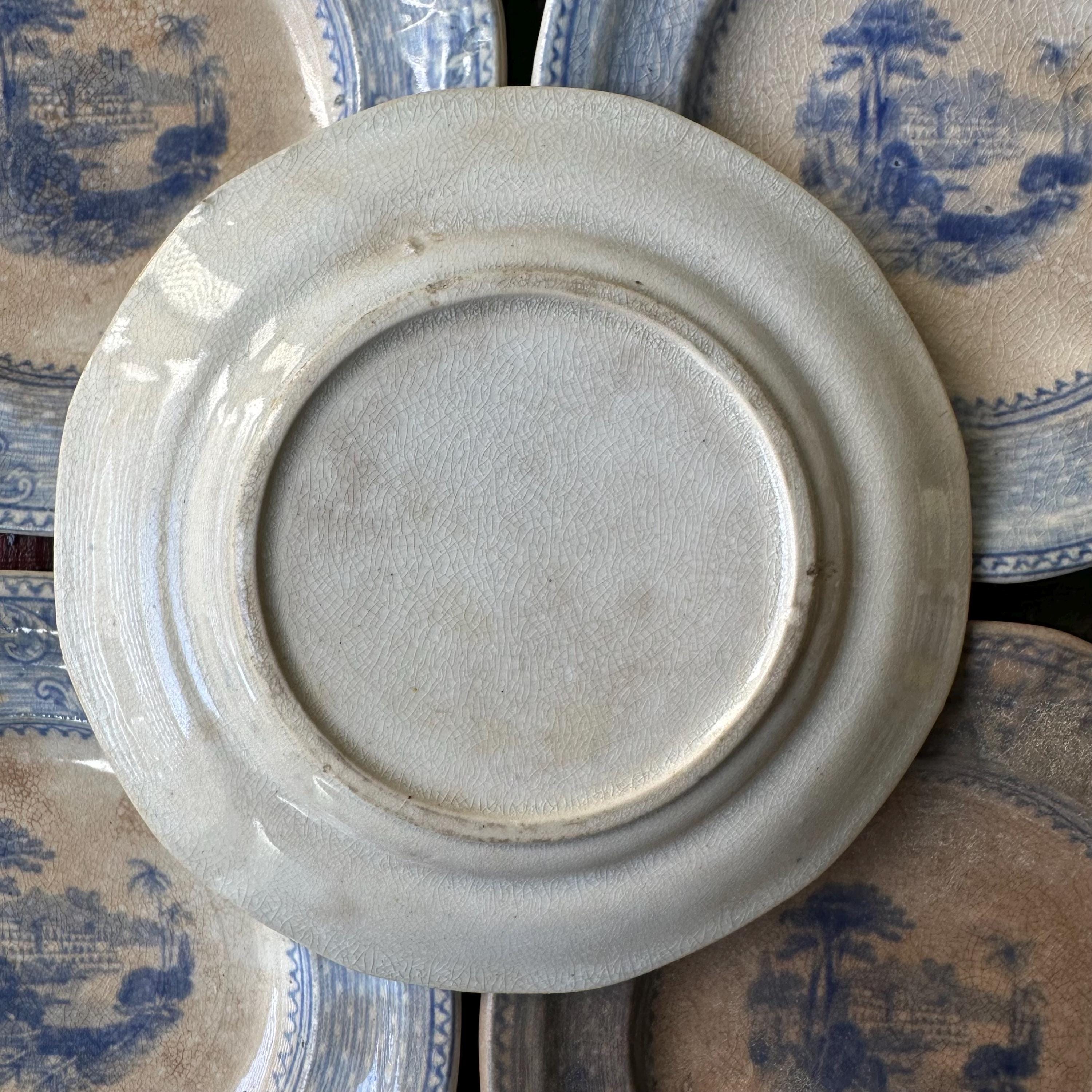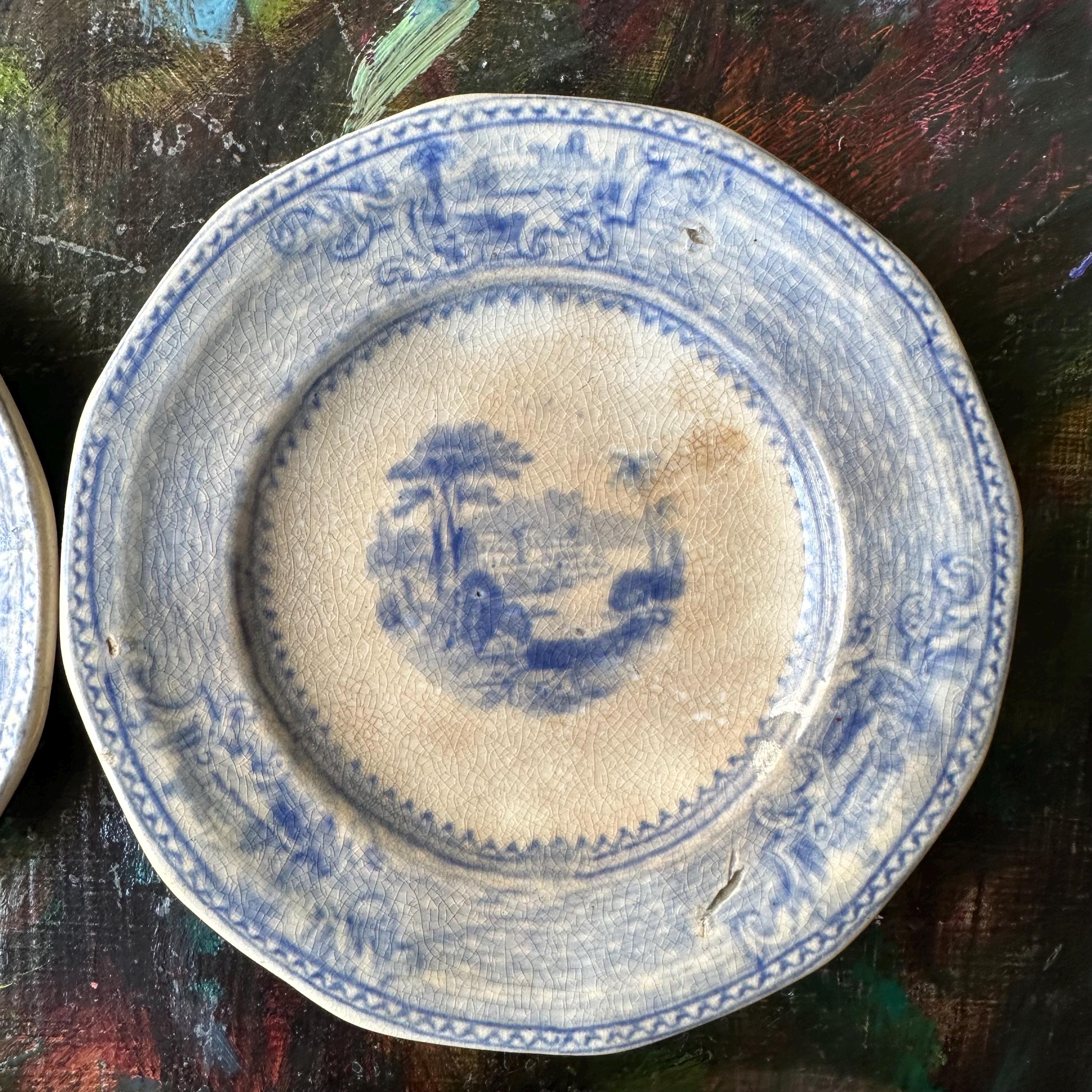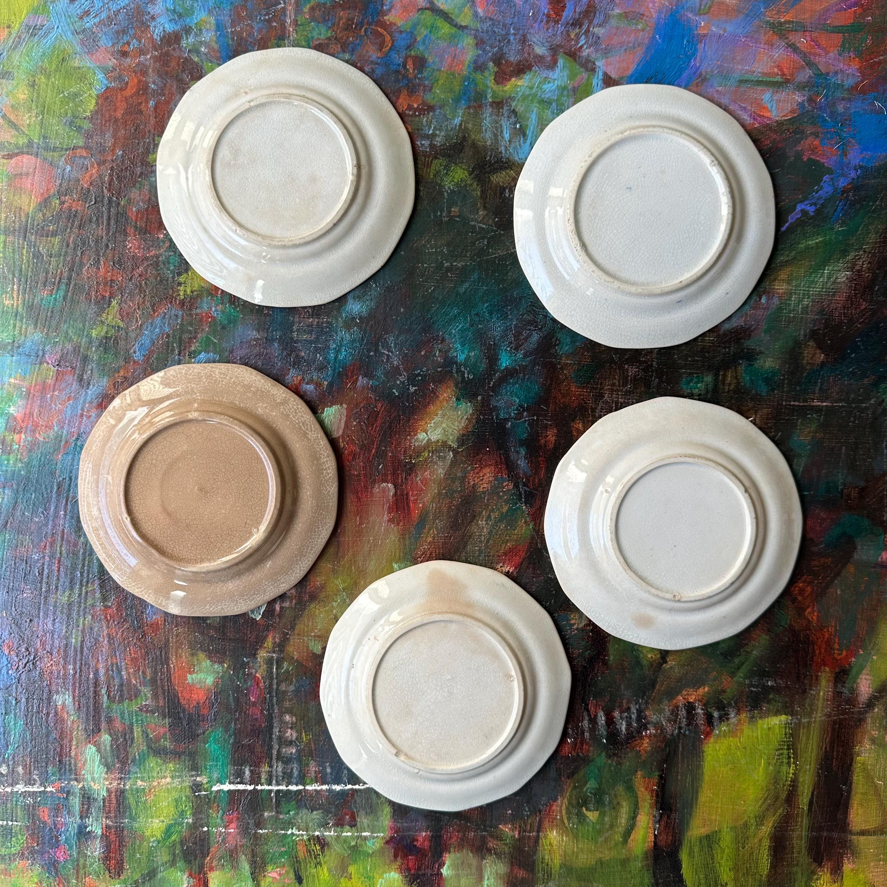 The butter pats are in good antique condition for their age and use. They have crackling to the glaze with staining to the crackling, giving them a lovely patina. The individual dishes have some small chips to the tops, bottoms, and edges. Please see photos! There are no cracks.
