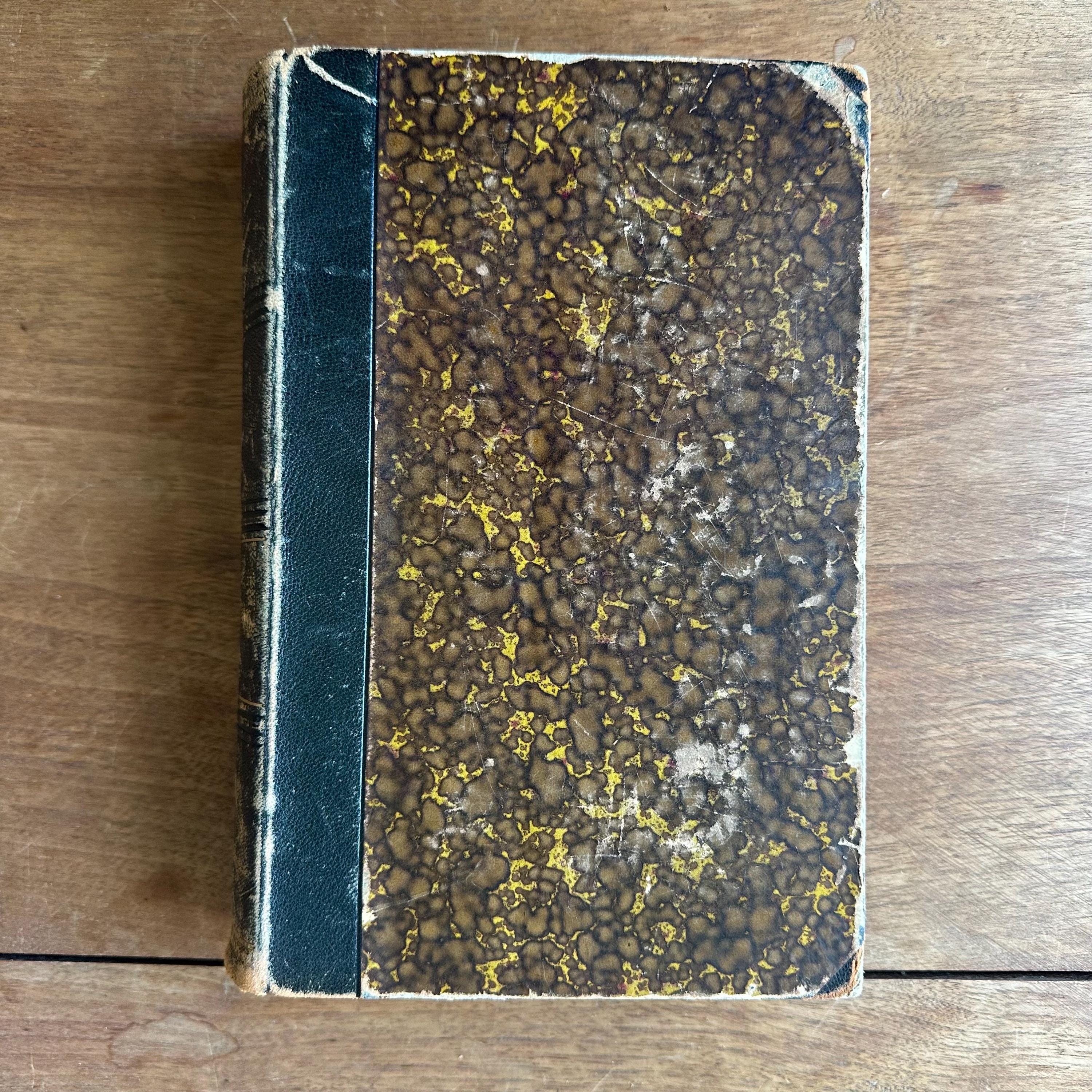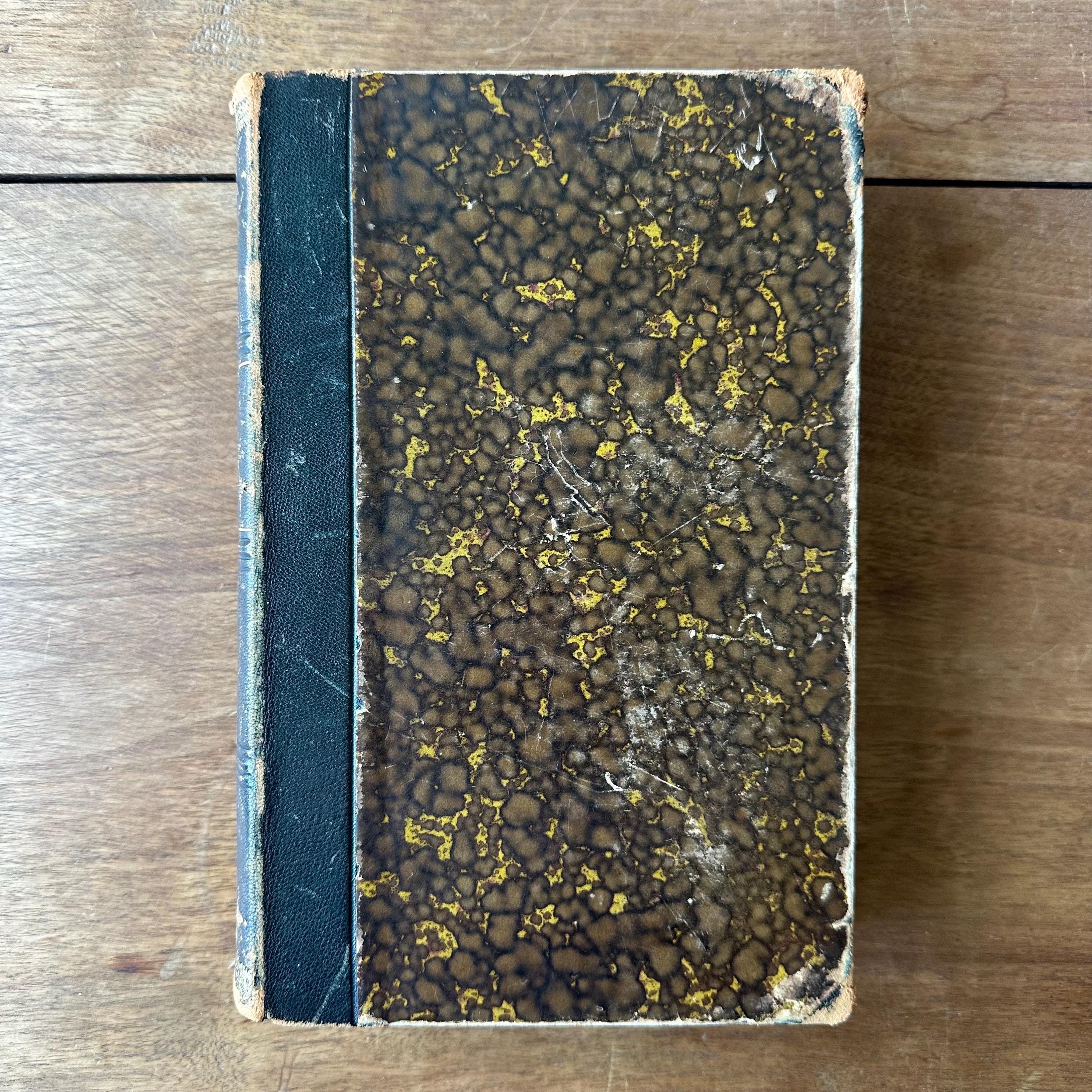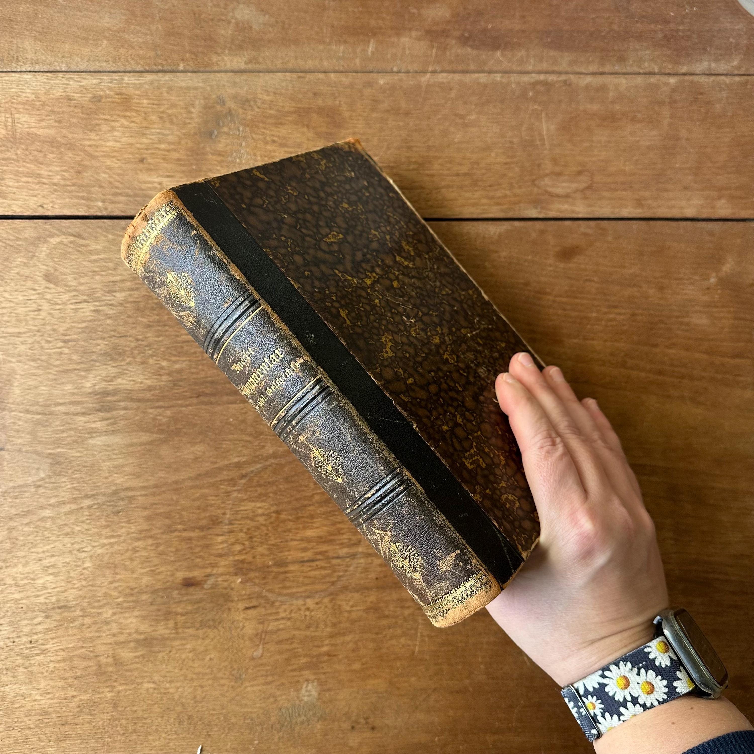 The book is in good antique condition for its age and use. It has general wear to the covers with concentrated wear to the corners and edges. The spine's gold lettering is intact and there are multiple scratches to the leather. The covers are attached at the spine. The pages are yellowed. The fold out pages have some small tears to the edges.