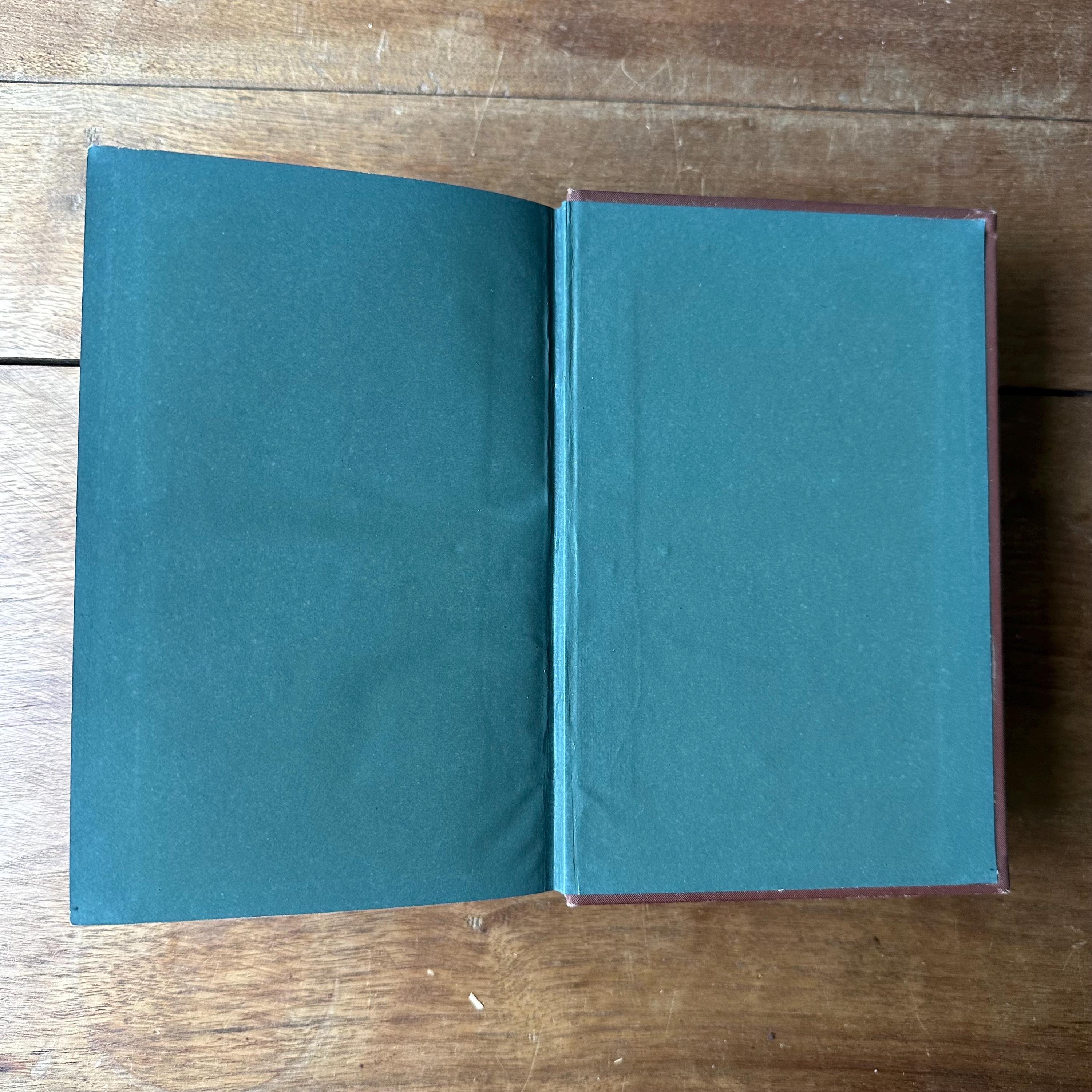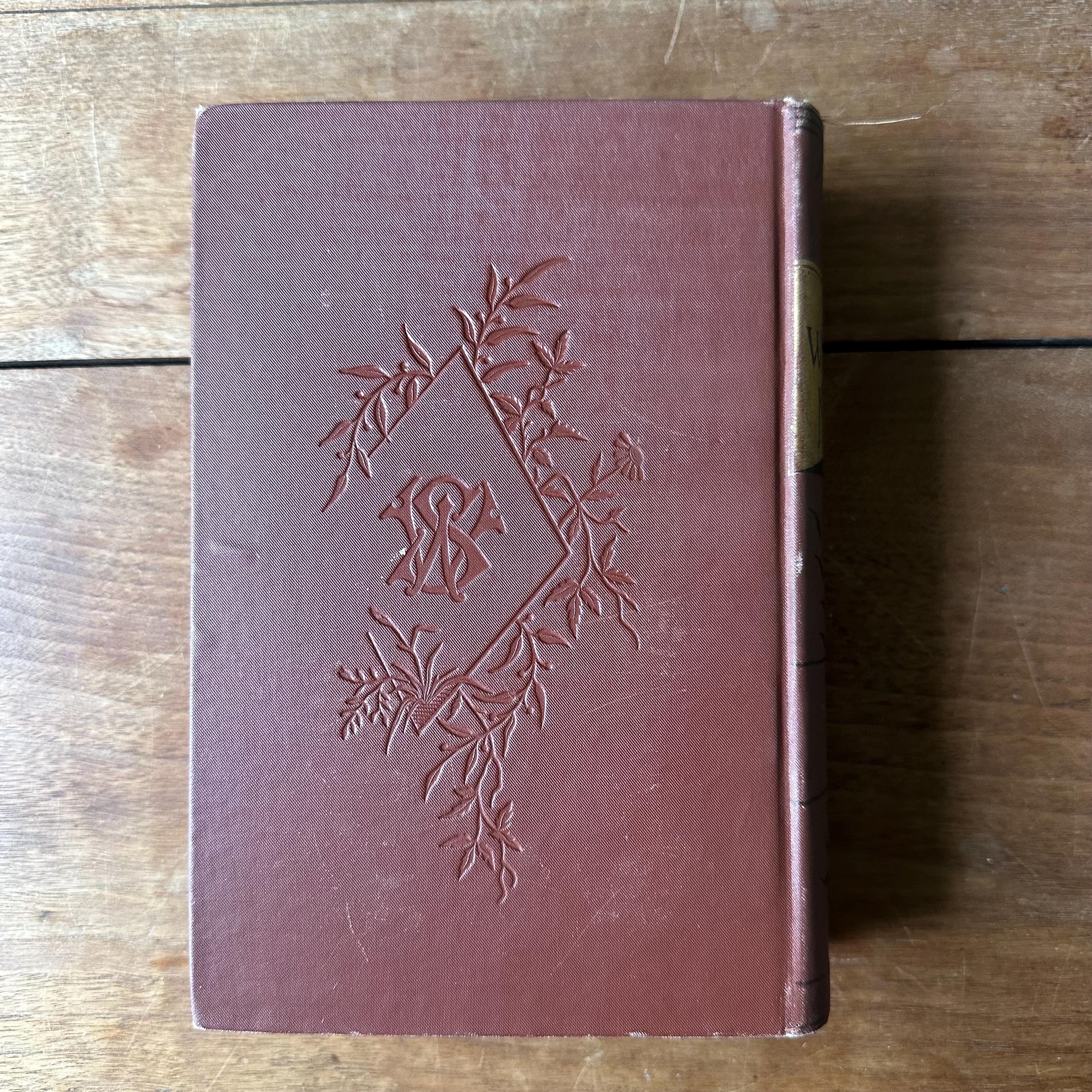 The book is in great antique condition for its age and use. The covers have general wear with minimal fading to the details or embossing. The gold on the spine has some slight fading but is mostly still bright. There is some fraying to the top of the spine and the corners. The covers are still attached at the spine at the back cover and mostly attached, but cracked at the front cover. The pages are browning.
