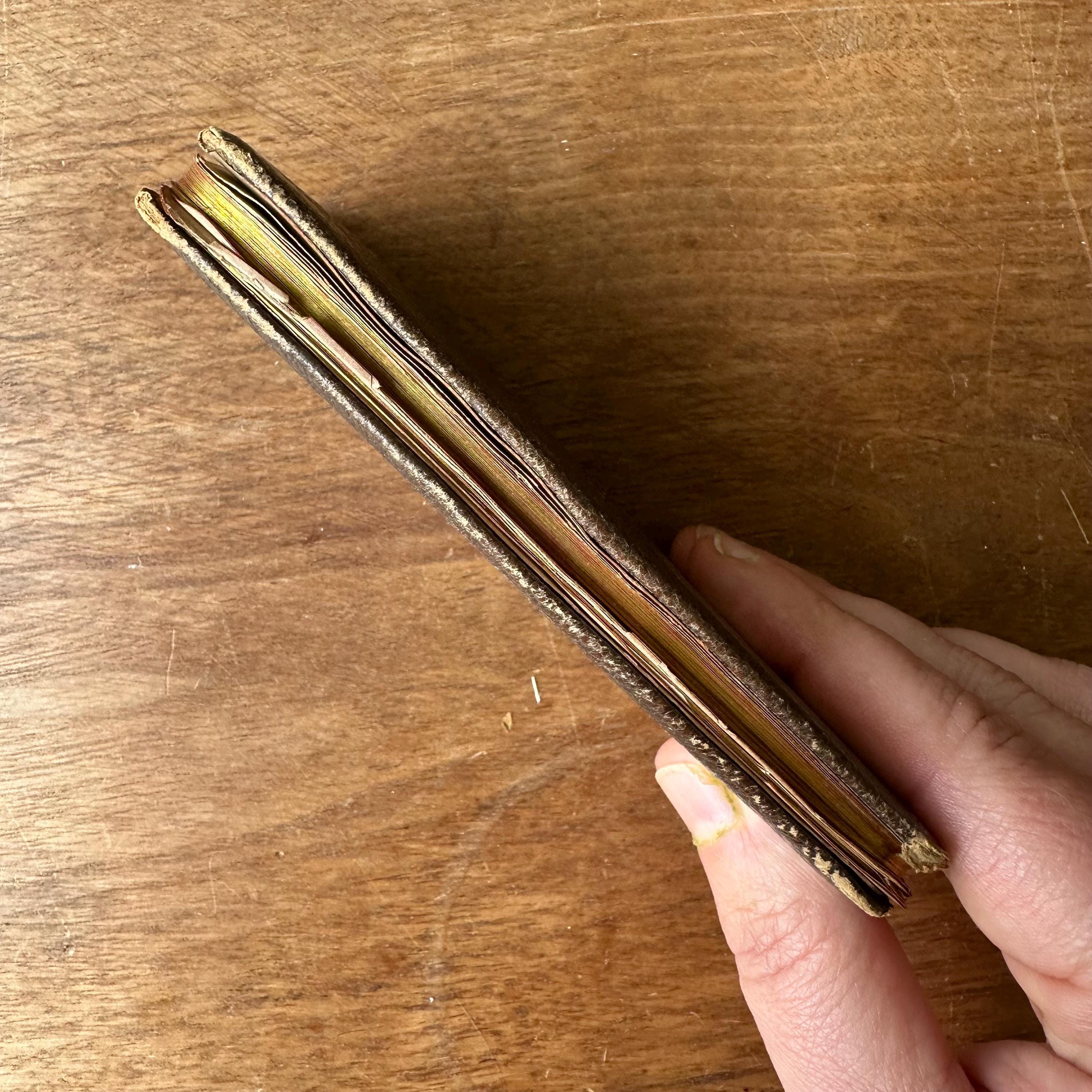 The book measures 4.75 inches by 2.5 inches. It is a quarter of an inch thick.